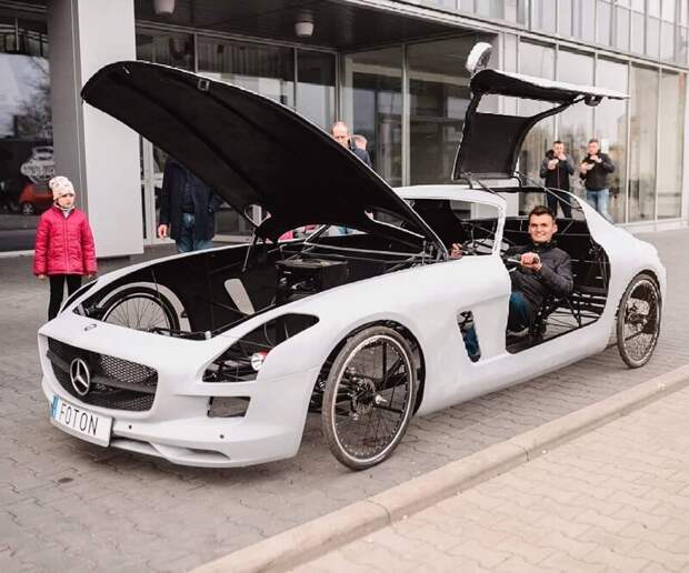 Первый суперкар без двигателя - педальный автомобиль с кузовом Mercedes SLS из стекловолокна.