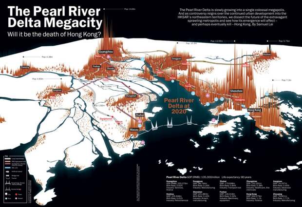 Именно этотому региону на юго-востоке Китая (Дельта Жемчужной реки) урбанисты прочат титул крупнейшего мегаполиса будущего.