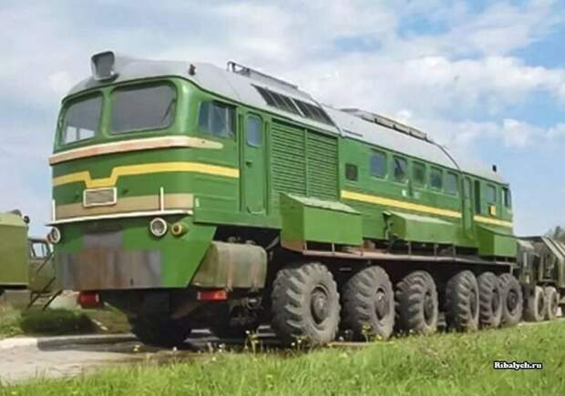 На шасси МЗКТ–7919 установили кузов бывшего тепловоза М62… В подмосковных Бронницах, за забором ВНИКТИ, куда поступает на обкатку новая армейская техника, уже не один месяц стоит неизвестное транспортное средство, похожее на тепловоз. Как удалось выяснить, на нем отрабатывают конструкцию сверхмощного шасси для установки специального оборудования. Дело в том, что создавать на имеющемся шасси МЗКТ–7919 новый кузов, да к тому же начиненный сложными электрическими и гидравлическими агрегатами, военному институту оказалось просто не под силу. На помощь пришла военная смекалка. Так появился на свет этот чудо–тягач. На шасси установили кузов бывшего тепловоза М62…